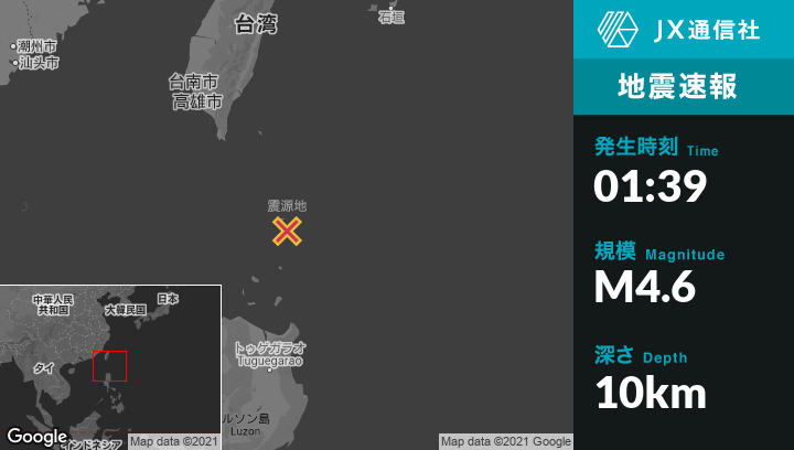 | 震源地 | フィリピンのBascoから南東15kmの地点 |