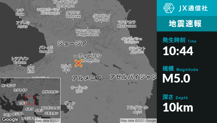 8月16日 10:44頃、アルメニアのMetsavanから西20kmの地点でM5.0の地震がありました。