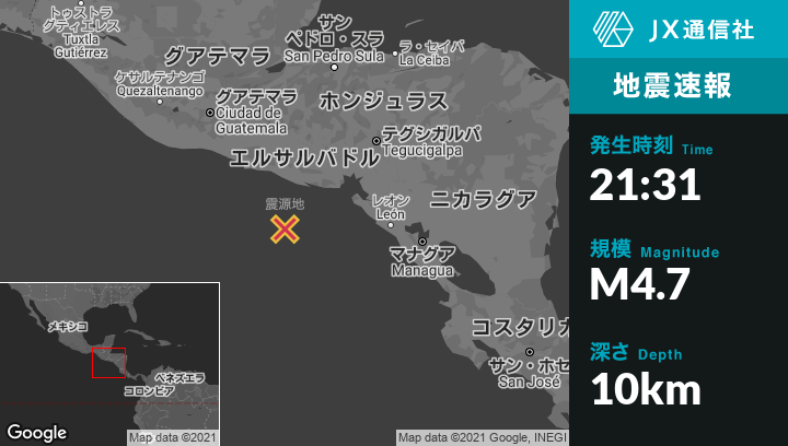 | 震源地 | エルサルバドルのPuerto El Triunfoから南南西103kmの地点 |
