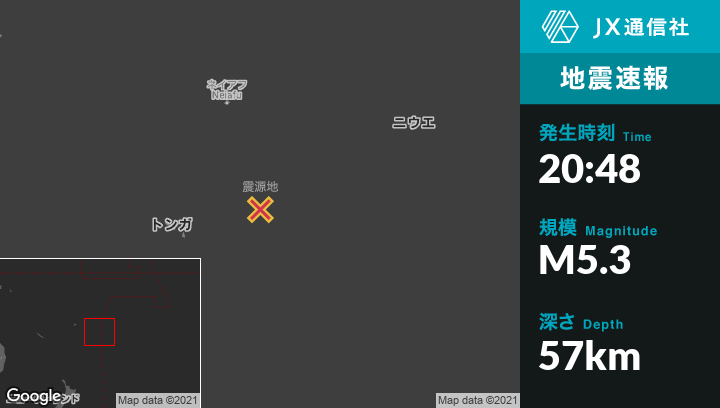 | 震源地 | トンガのPangaiから南東153kmの地点 |