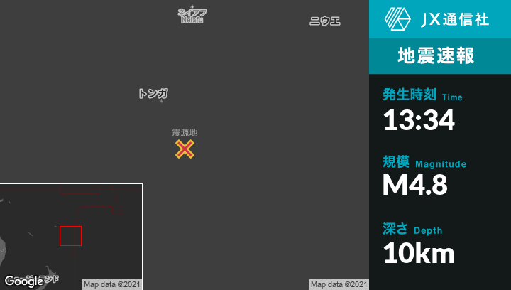 | 震源地 | トンガの‘Ohonuaから南南東163kmの地点 |