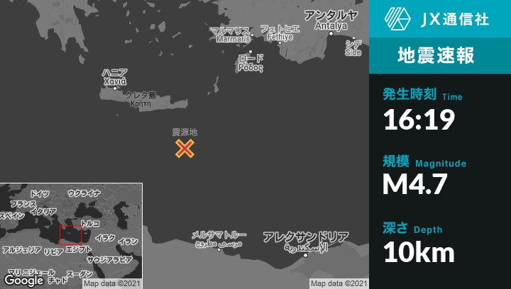 | 震源地 | ギリシャのIerápetraから南南東109kmの地点 |