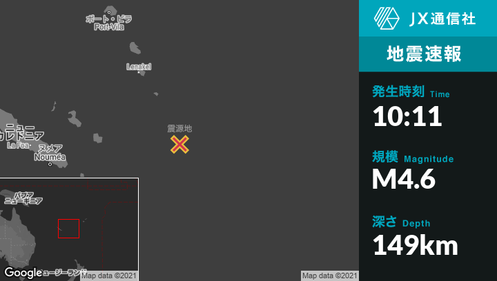 | 震源地 | バヌアツのIsangelから南南東261kmの地点 |