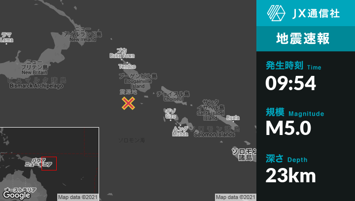 | 震源地 | パプアニューギニアのPangunaから南南西117kmの地点 |