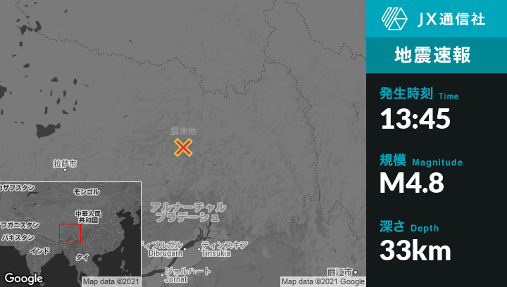 10月02日 13:45頃、インドのShi Yomiから北北東209kmの地点でM4.8の地震がありました。