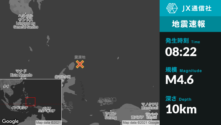 | 震源地 | インドネシアのTobeloから北東150kmの地点 |