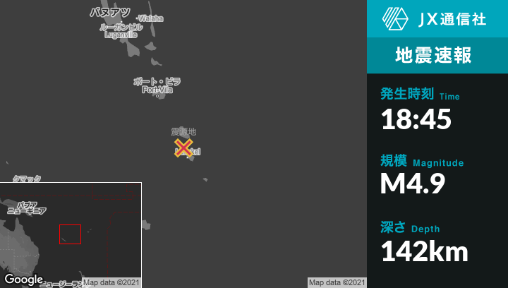| 震源地 | バヌアツのIsangelから北北西45kmの地点 |