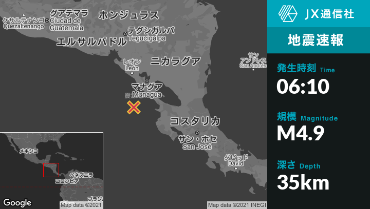 | 震源地 | ニカラグアのMasachapaから南南西82kmの地点 |