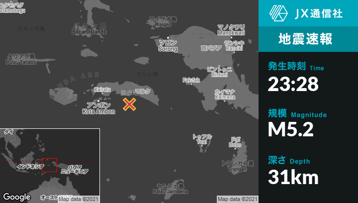 | 震源地 | インドネシアのAmahaiから東南東80kmの地点 |