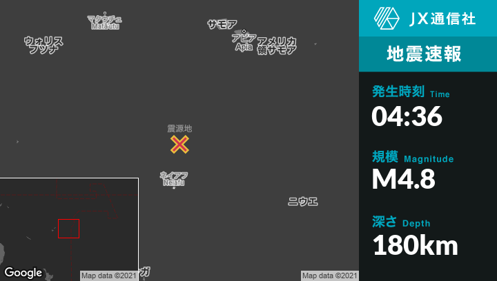 | 震源地 | トンガのHihifoから南138kmの地点 |