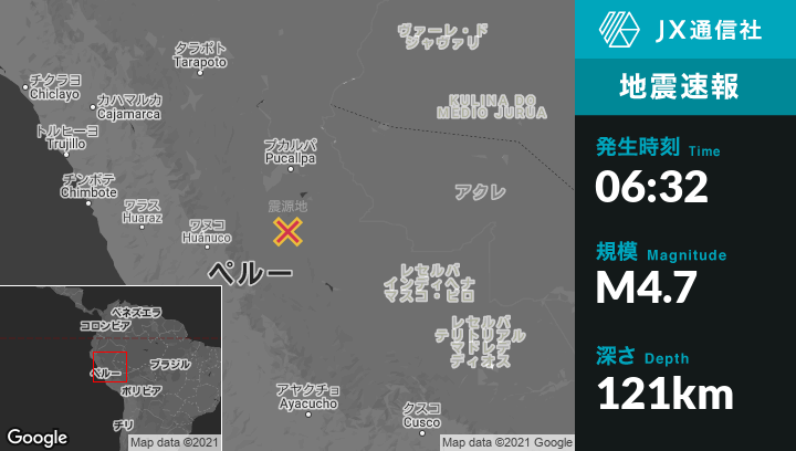 | 震源地 | ペルーのYuyapichisから東北東38kmの地点 |
