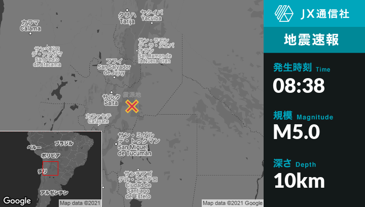 | 震源地 | アルゼンチンのEl Galpónから北東21kmの地点 |