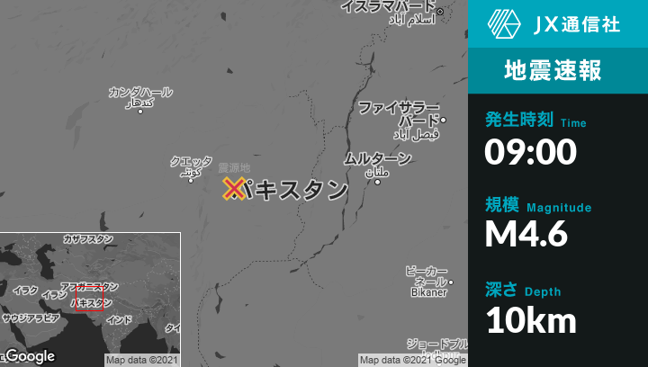 | 震源地 | パキスタンのHarnaiから東9kmの地点 |