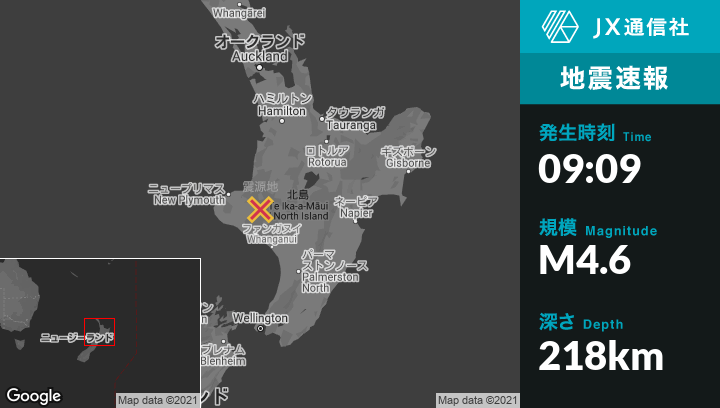 | 震源地 | ニュージーランドのElthamから東北東46kmの地点 |