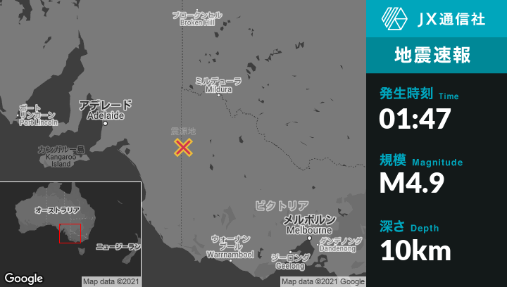 | 震源地 | オーストラリアのKeithから北東93kmの地点 |