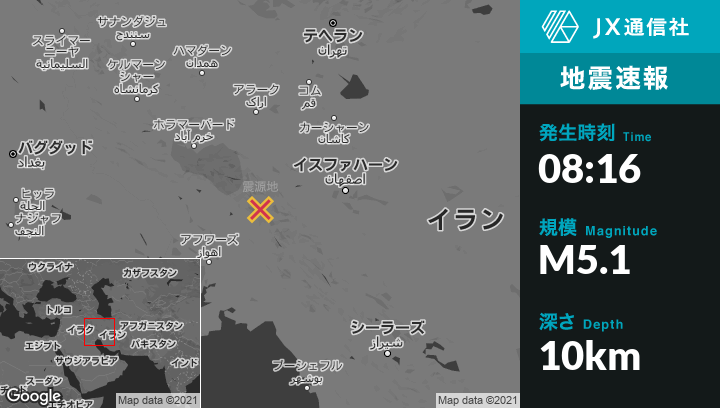 | 震源地 | イランのFereydūnshahrから南南西68kmの地点 |