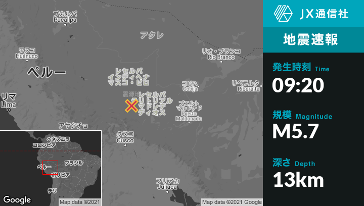 | 震源地 | ペルーのSalvaciónから北北西127kmの地点 |