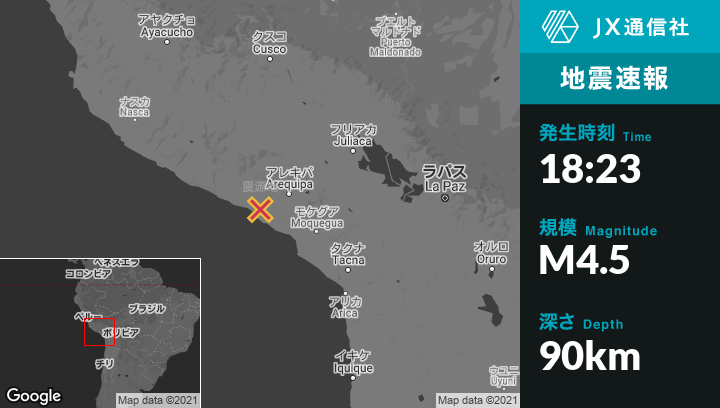| 震源地 | ペルーのSanta Rita de Siguasから南西16kmの地点 |