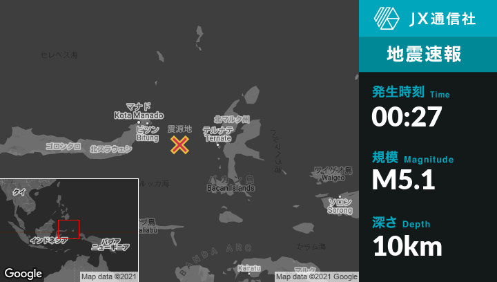 | 震源地 | インドネシアのTernateから西138kmの地点 |