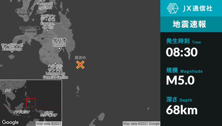 | 震源地 | フィリピンのPondaguitanから東南東88kmの地点 |