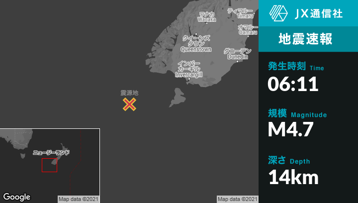 | 震源地 | ニュージーランドのRivertonから西南西195kmの地点 |