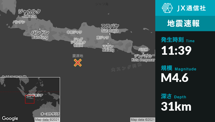 | 震源地 | インドネシアのPundongから南141kmの地点 |