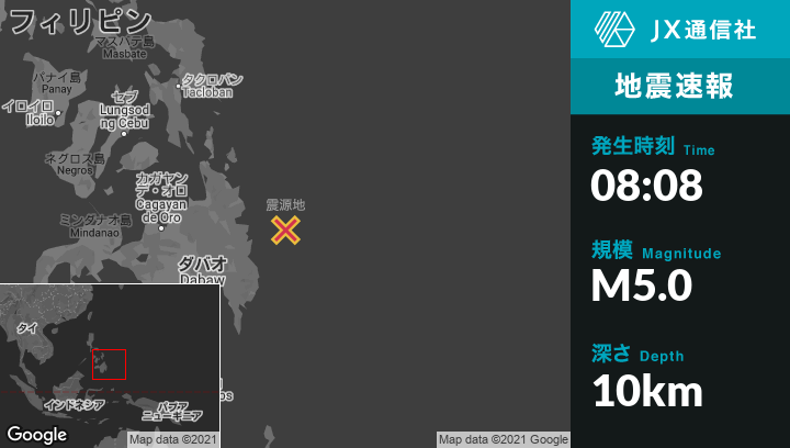 | 震源地 | フィリピンのBarcelonaから東北東84kmの地点 |