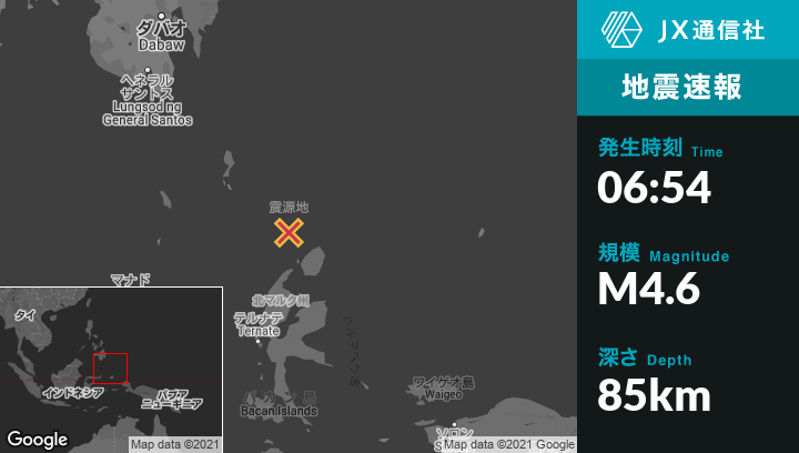 | 震源地 | インドネシアのTobeloから北144kmの地点 |