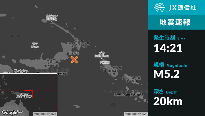 | 震源地 | パプアニューギニアのKokopoから南南東120kmの地点 |