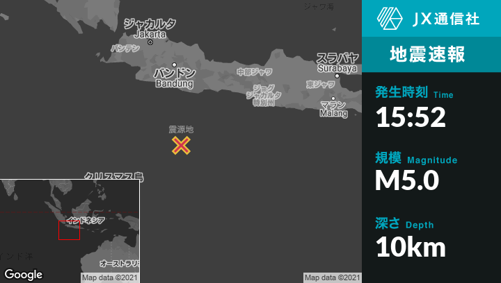 | 震源地 | インドネシアのKawaluから南217kmの地点 |