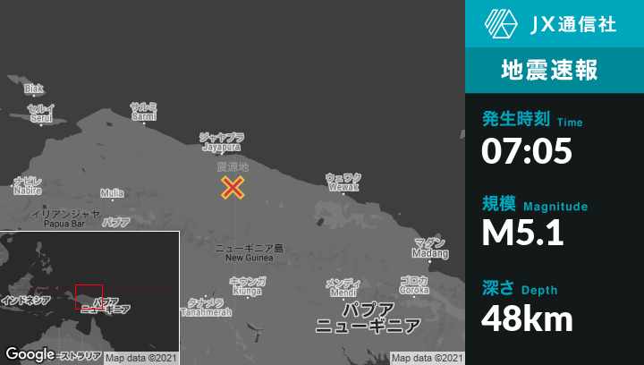 | 震源地 | パプアニューギニアのVanimoから南南西79kmの地点 |