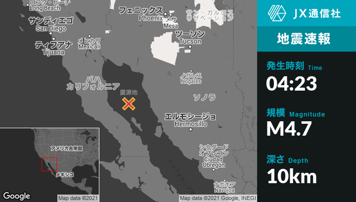 11月30日 04:23頃、メキシコのLa Libertadから西北西101kmの地点でM4.7の地震がありました。