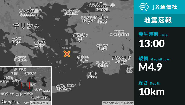 | 震源地 | ギリシャのAgios Kirykosから西北西24kmの地点 |