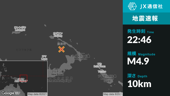 | 震源地 | パプアニューギニアのKaviengから南南東113kmの地点 |
