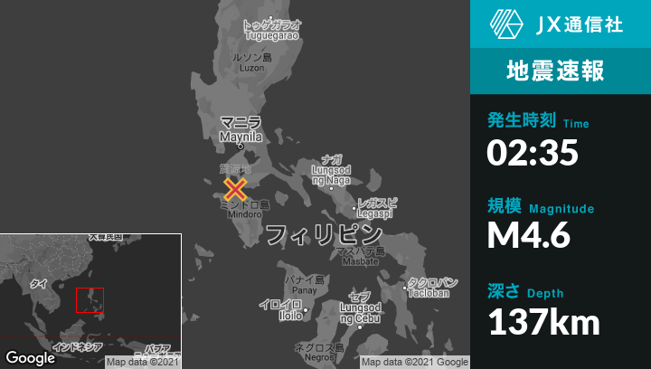| 震源地 | フィリピンのBagalangitから西北西3kmの地点 |