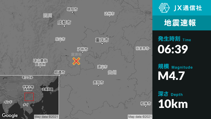 | 震源地 | 中国のXunchangから東南東25kmの地点 |