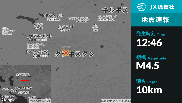 | 震源地 | タジキスタンのDarbandから南東32kmの地点 |