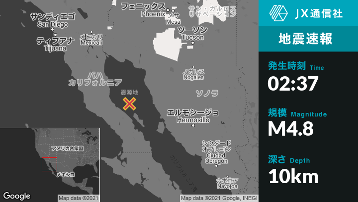 12月06日 02:37頃、メキシコのLa Libertadから西104kmの地点でM4.8の地震がありました。