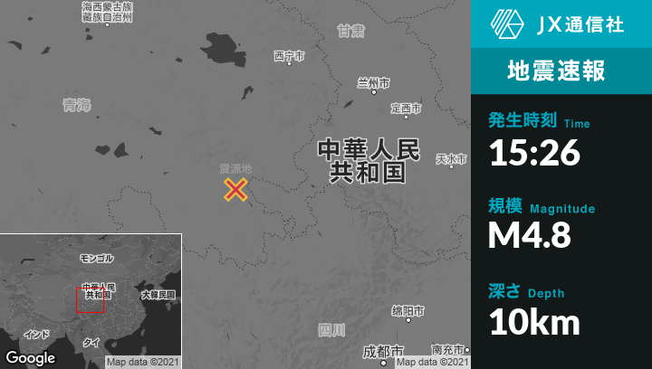 | 震源地 | 中国のXiningから南南西290kmの地点 |