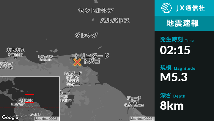 | 震源地 | ベネズエラのGüiriaから南30kmの地点 |