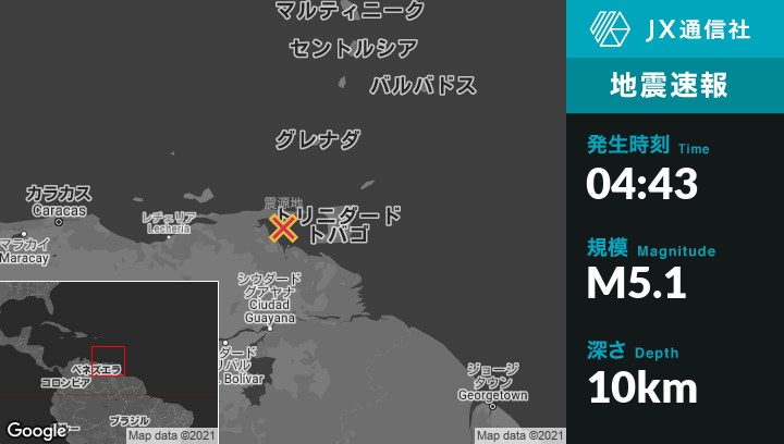 | 震源地 | ベネズエラのGüiriaから南西13kmの地点 |