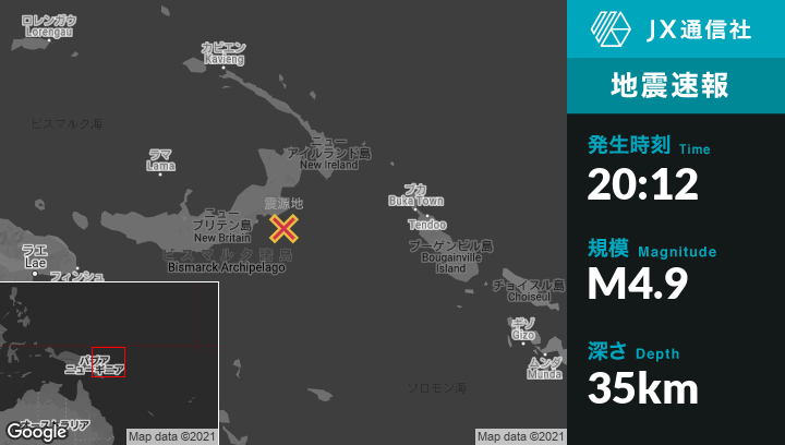 | 震源地 | パプアニューギニアのKokopoから南南西151kmの地点 |
