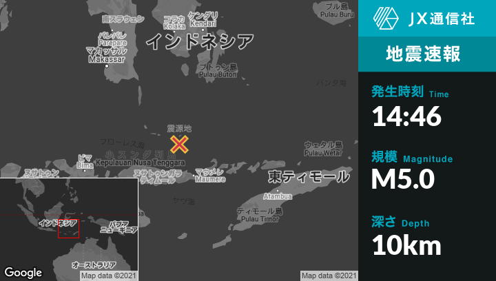 | 震源地 | インドネシアのMaumereから北北西132kmの地点 |
