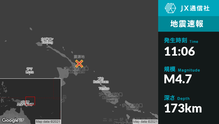 | 震源地 | パプアニューギニアのKokopoから東北東110kmの地点 |