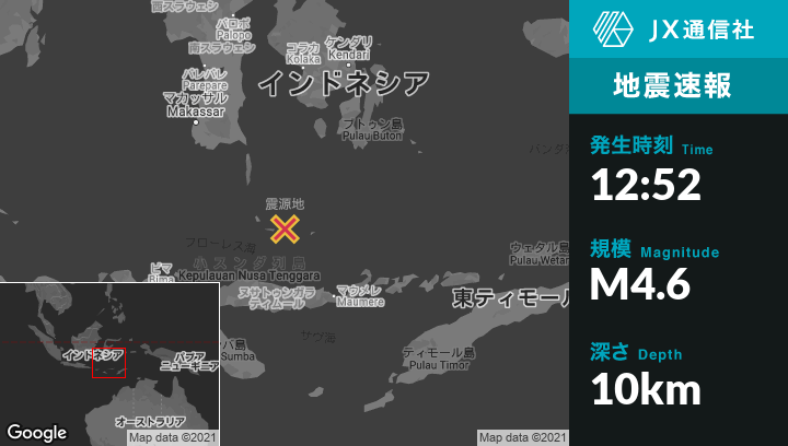 | 震源地 | インドネシアのRutengから北北東180kmの地点 |