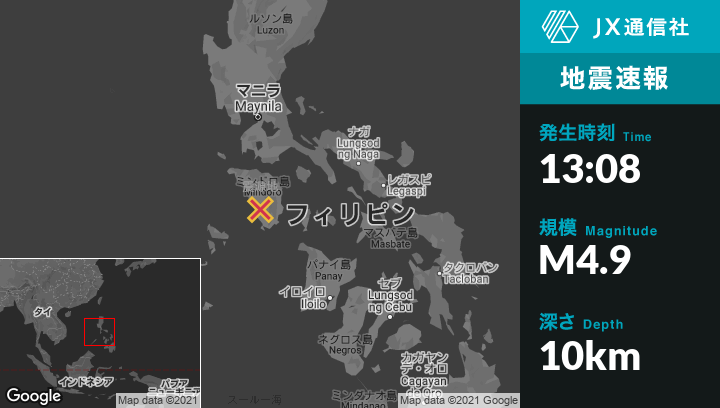 12月21日 13:08頃、フィリピンのBanosから北東16kmの地点でM4.9の地震がありました。