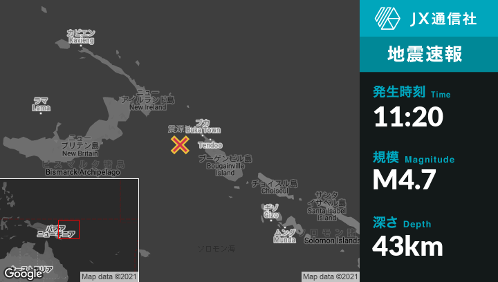 | 震源地 | パプアニューギニアのPangunaから西北西189kmの地点 |