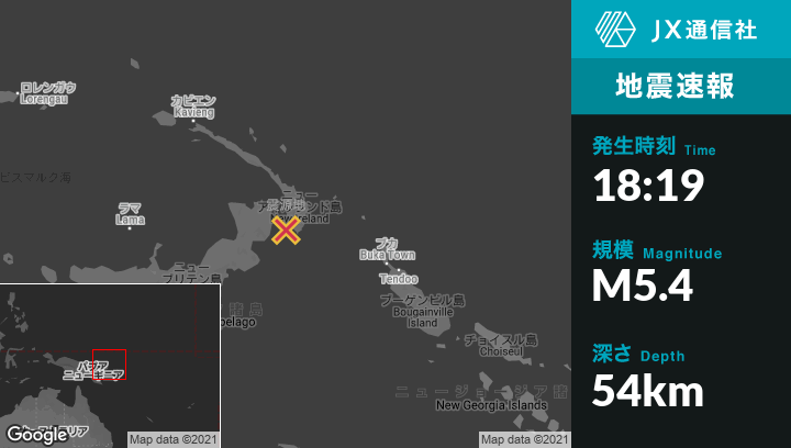 | 震源地 | パプアニューギニアのKokopoから南東51kmの地点 |