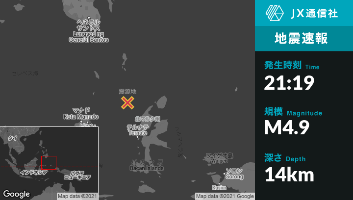 | 震源地 | インドネシアのTobeloから西北西144kmの地点 |