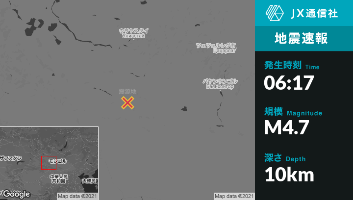 | 震源地 | モンゴルのAltaiから南南東60kmの地点 |